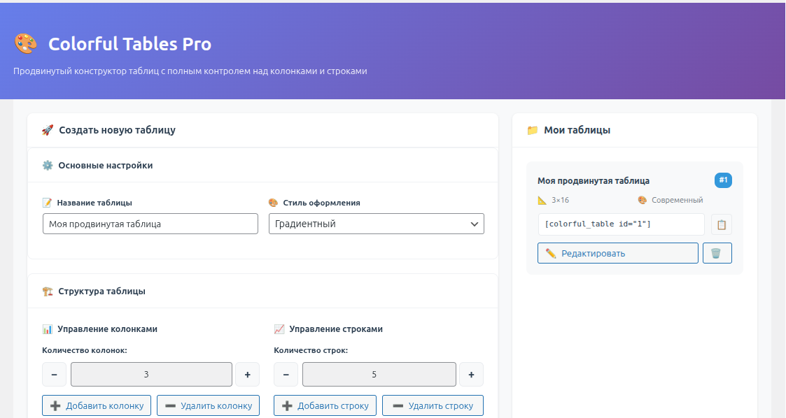 * Description: Продвинутый конструктор таблиц с управлением колонками и строками