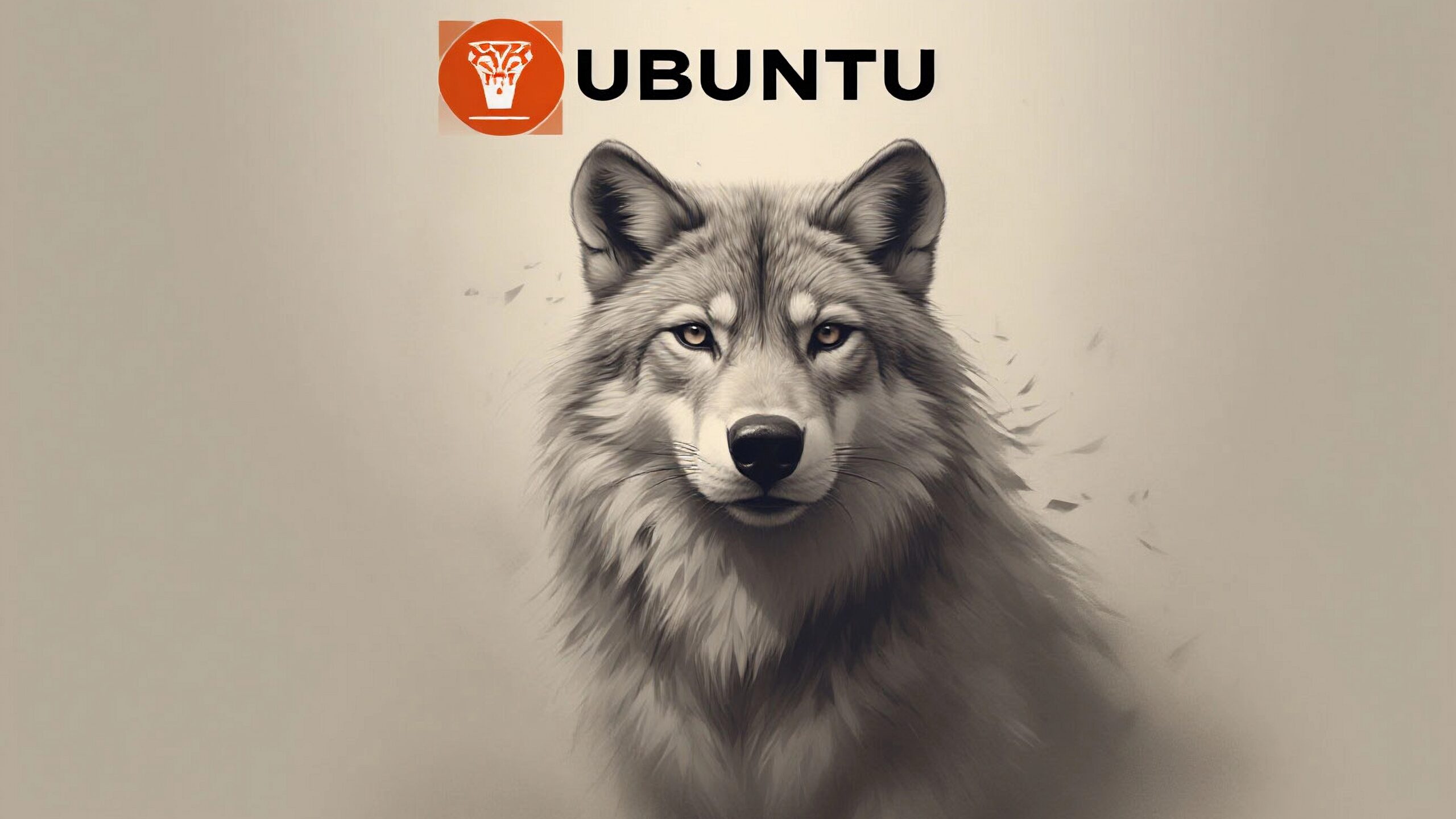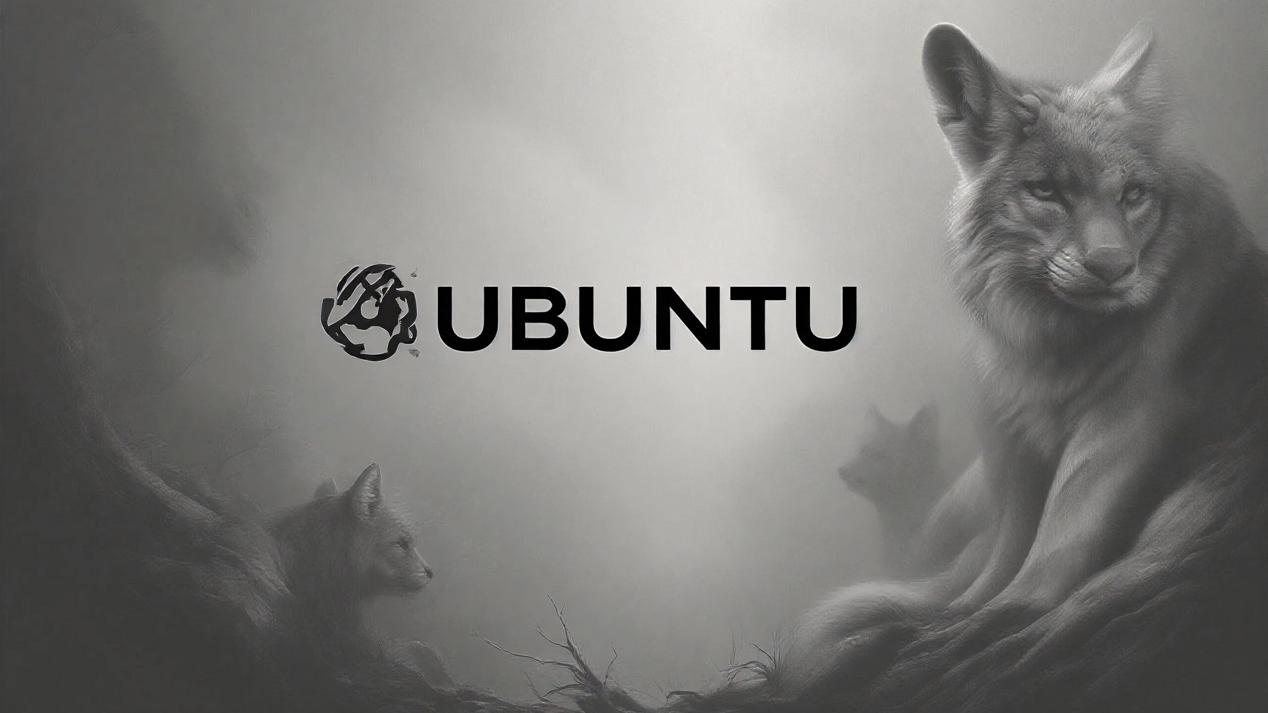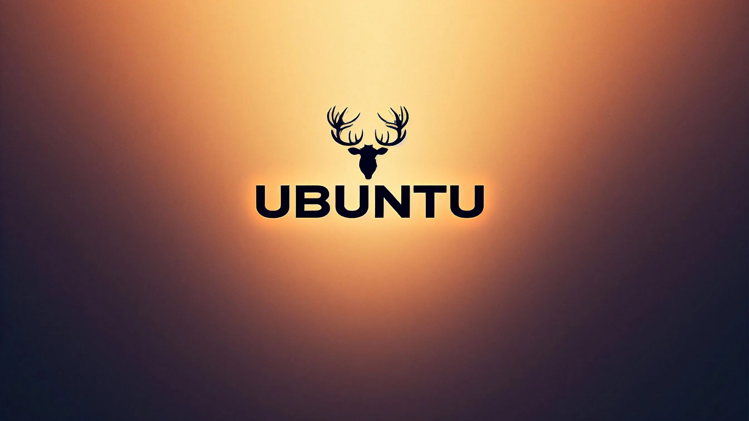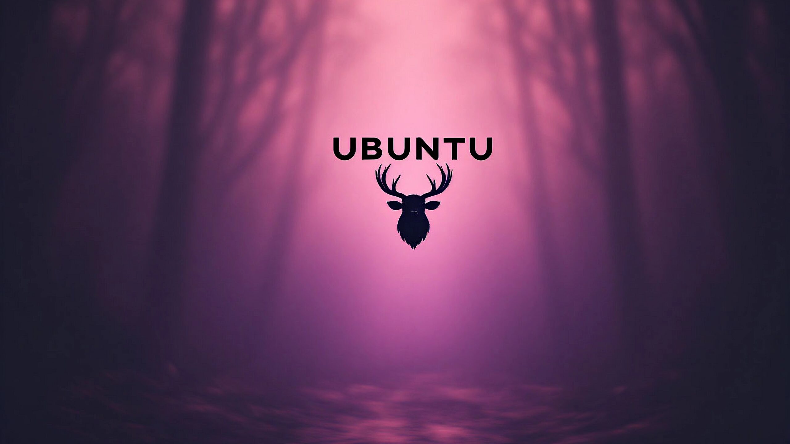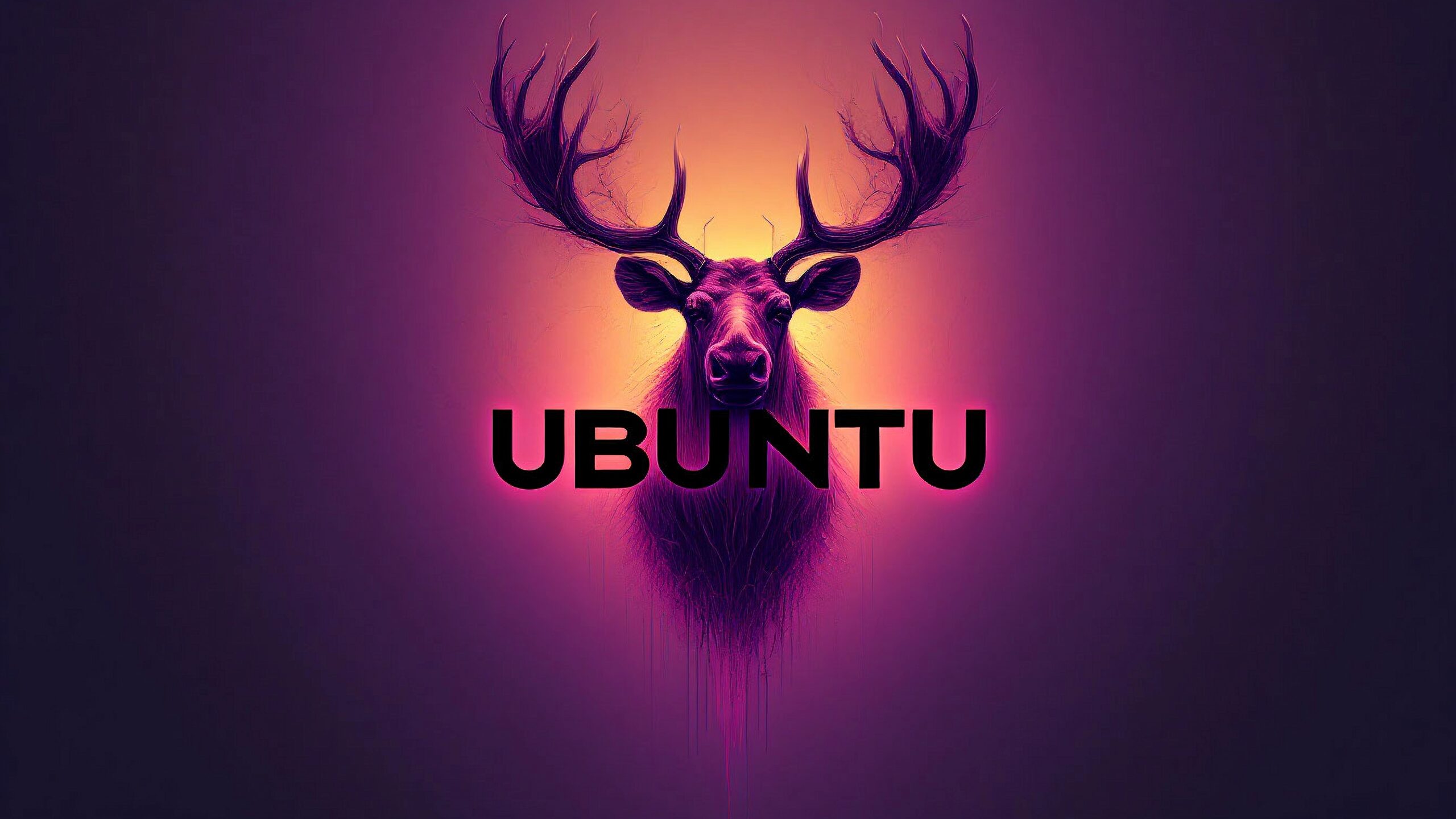 Красивые обои для рабочего стола, надпись: «UBUNTU», небольшой логотип в центре экрана в виде контура — (Здесь например или меняем лось, волк и т.д). Стиль строгий. Сюрреализм. Двухцветный градиент. Двойная экспозиция.