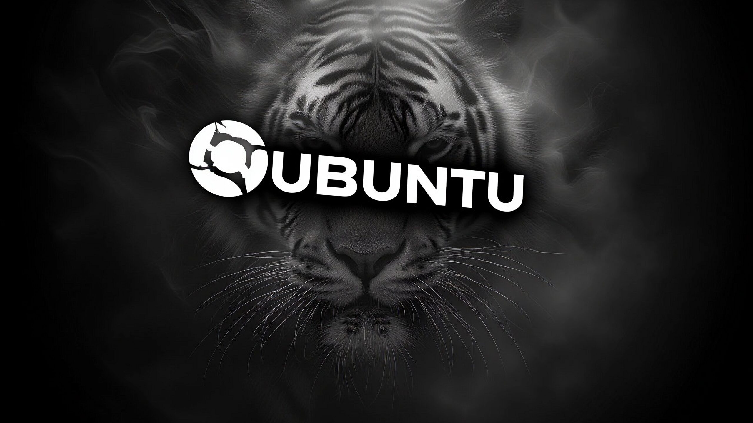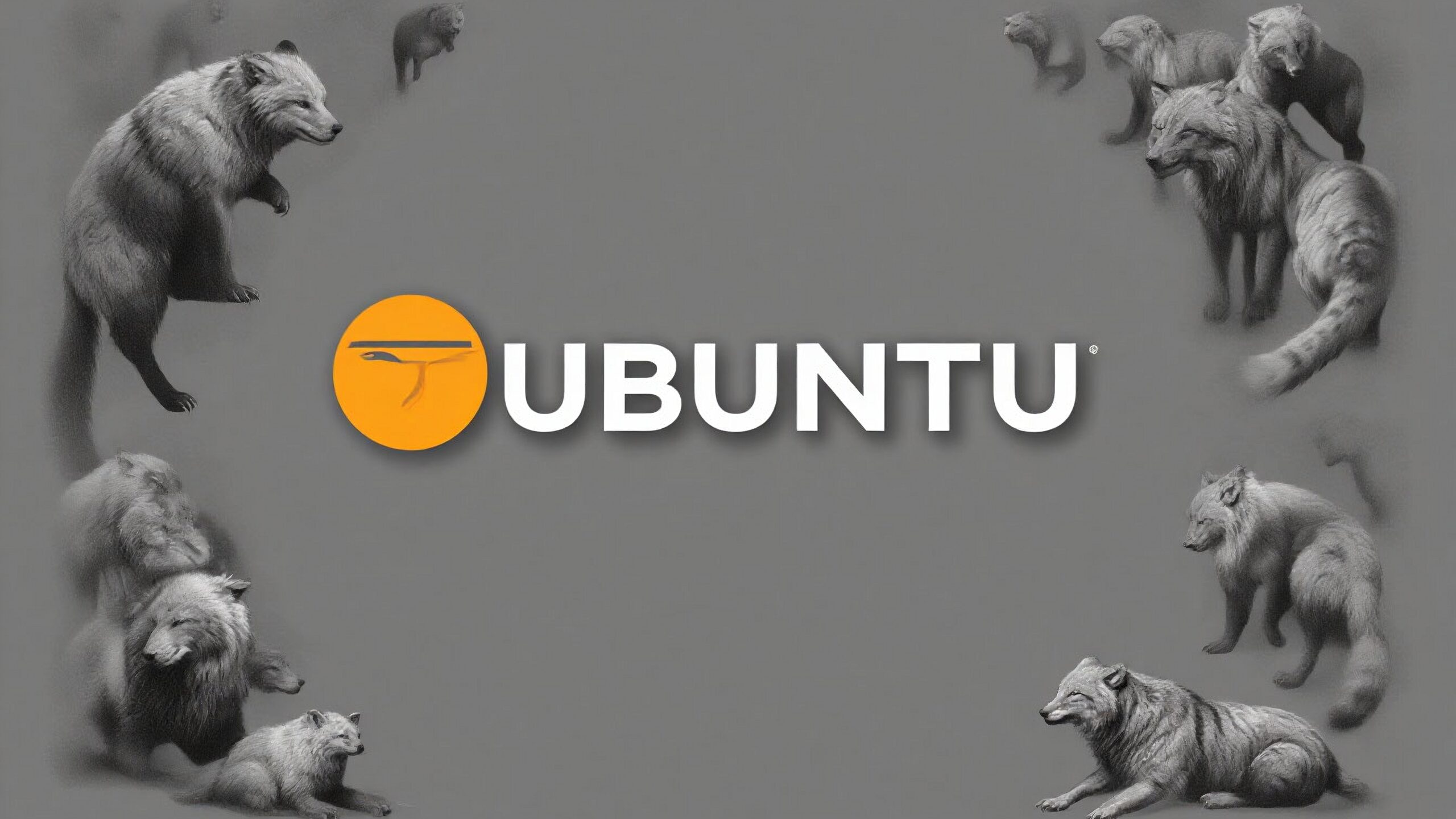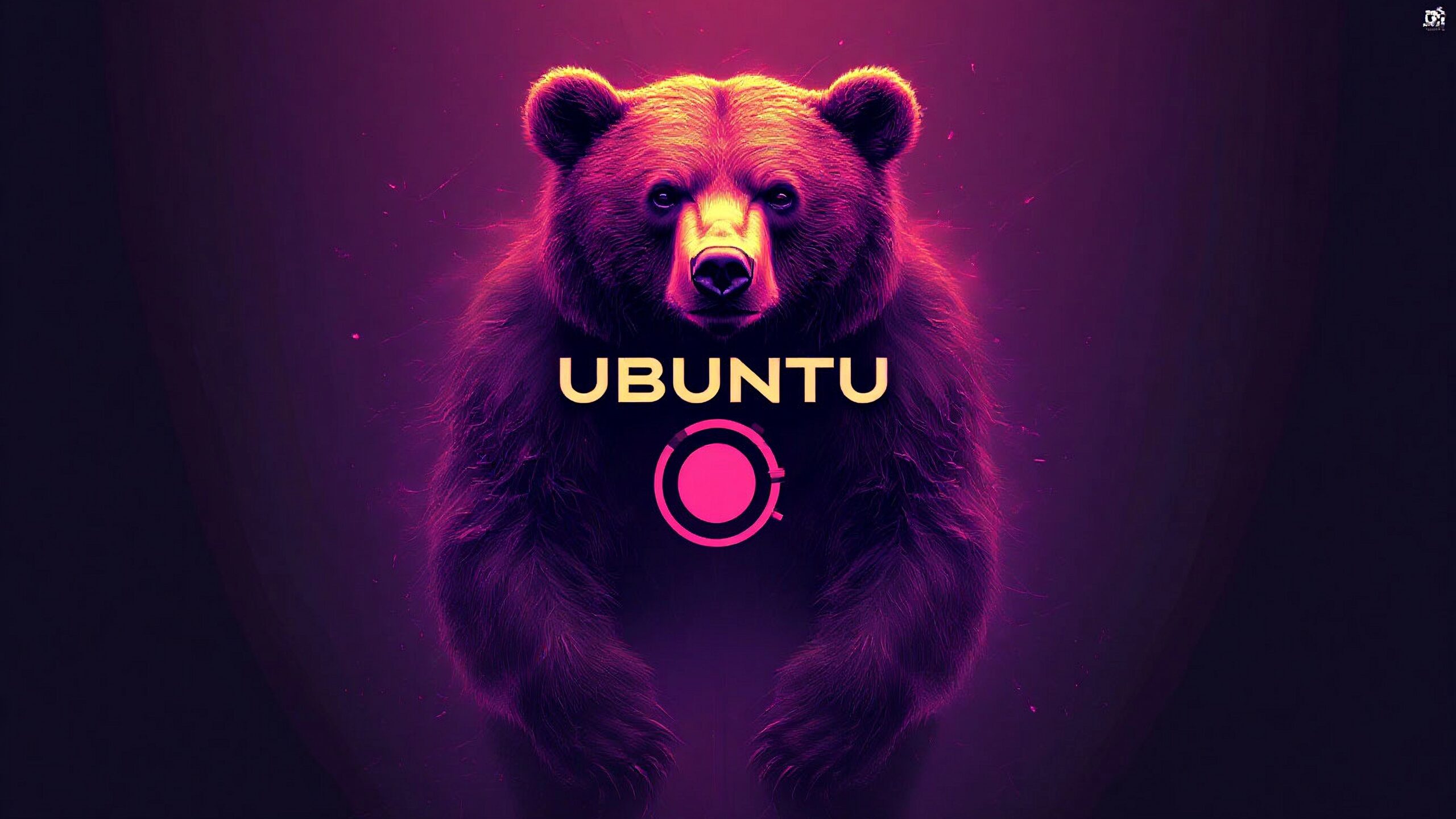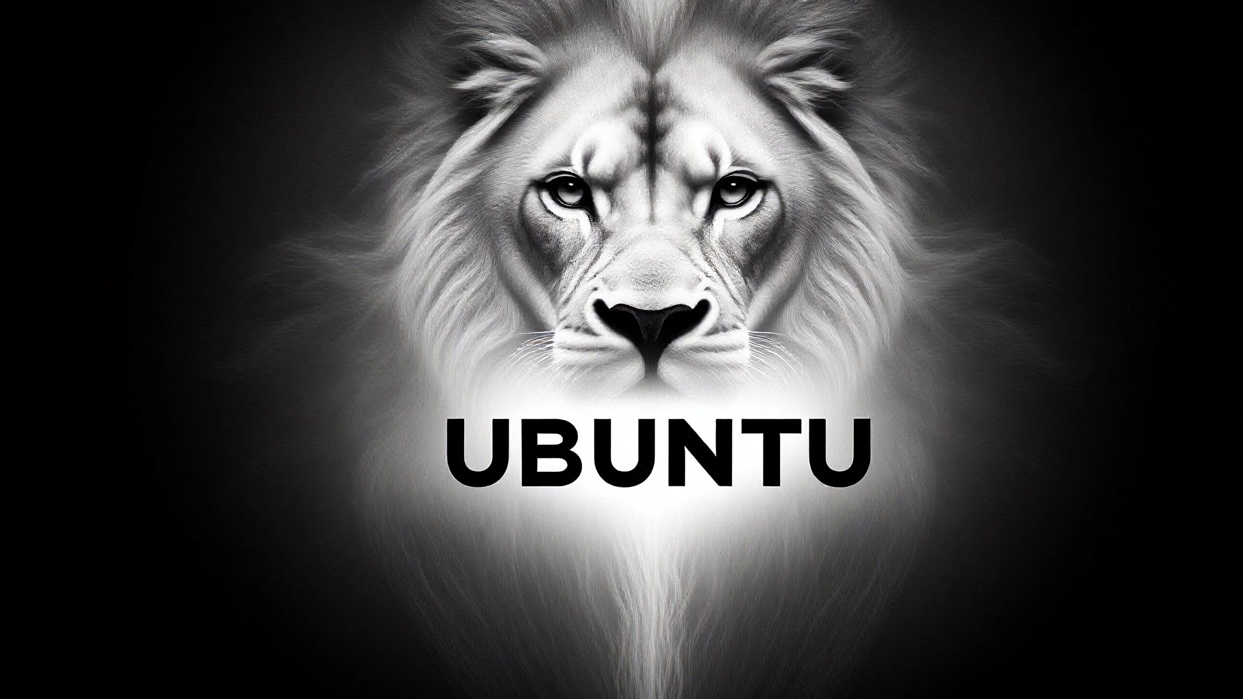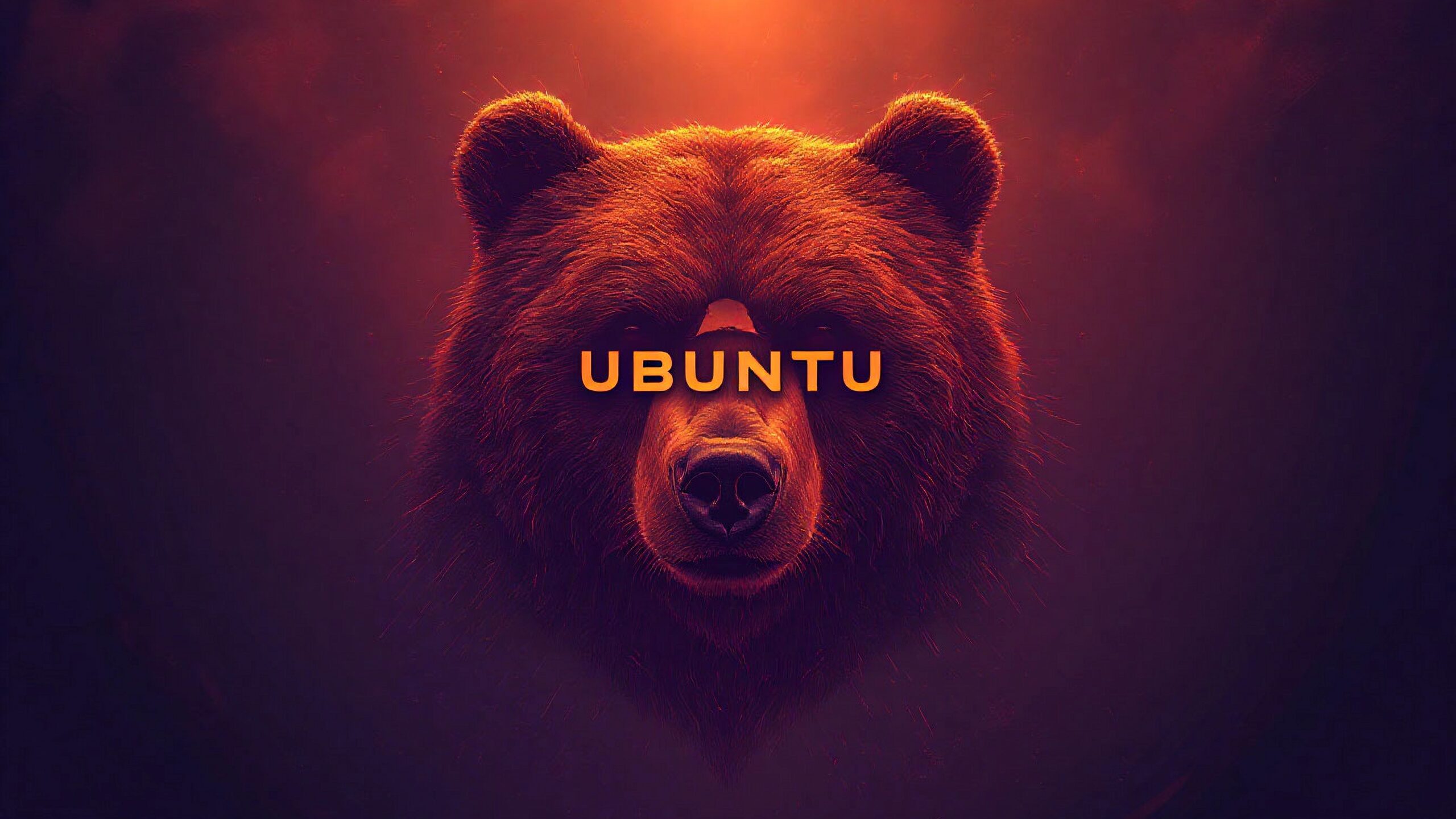 Красивые обои для рабочего стола, надпись: «UBUNTU», небольшой логотип в центре экрана в виде контура — (Здесь например или меняем лось, волк и т.д). Стиль строгий. Сюрреализм. Двухцветный градиент. Двойная экспозиция.