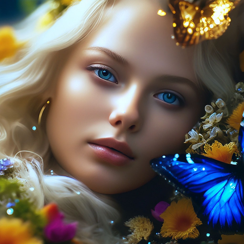 Океан, подводный мир, русалка синие волосы, ,красочно, , фэнтези, искрящаяся пыль, реалистично, детализация, гиперреализм, фотореализм , живые рыбки, 8k, 30mm, ✨яркое освещение✨, ️vedernickov.ru , выразительные глаза, красивое открытое лицо, , яркие цвета, высокая детализация, хвост рыбы, акула